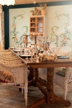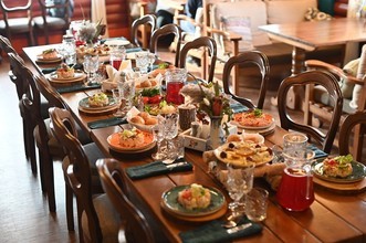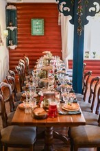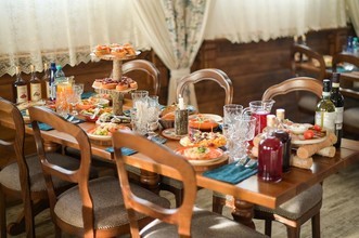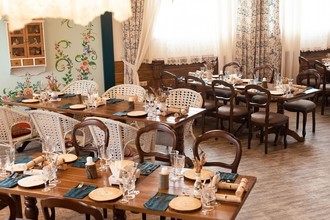 В ресторане сохранили все традиции русской кухни. Тут можно отведать борщ из говядины со сметаной, на второе заказать жаркое из кролика, картофель по-деревенски на гарнир, салат Оливье в качестве холодной закуски, а также свежайшую выпечку - пирожки с картошкой и капустой, расстегаи с рыбой, шаньги и вкуснейший десерт - трубочки с заварным кремом, блины, торты.